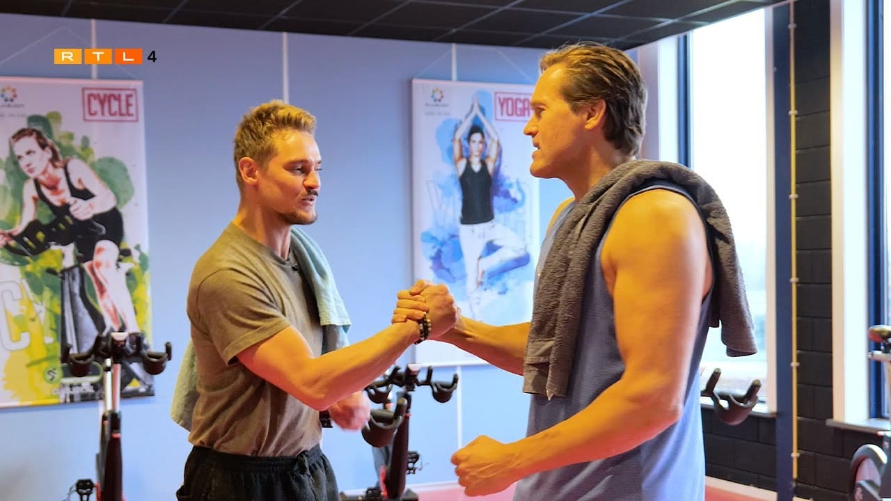 Diederik vertelt aan Ferry Doedens wat hij elke dag doet om gezond te blijven en geeft tips in de sportschool.
