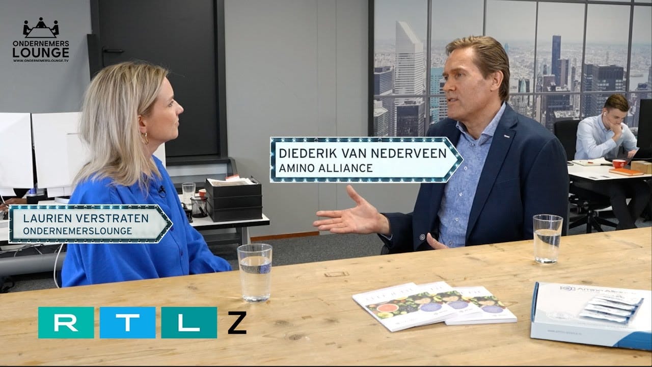 Opnieuw is presentatrice Laurien Verstraten uitgenodigd door Diederik van Nederveen van Amino Alliance®, die haar verder informeert over zijn supplement met aminozuren.